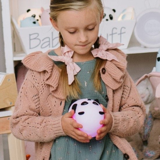 Ljubka nočna lučka v obliki pande z nežno svetlobo pomiri otroke vseh starosti. Najmlajšim zagotavlja miren spanec, vam pa je v pomoč tudi pri večerni negi malčka, zamenjavi pleničke ali hranjenju dojenčkov, saj ni potrebe po prižiganju glavne luči v prostoru.