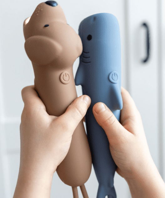 Svetilka v obliki krokodila, prevlečena z mehkim silikonom, je odlična kombinacija funkcionalnosti in zabave. Zahvaljujoč priročni nastavitvi svetlosti je idealen za večerne dogodivščine, igro senc ali pripovedovanje zgodb pred spanjem.