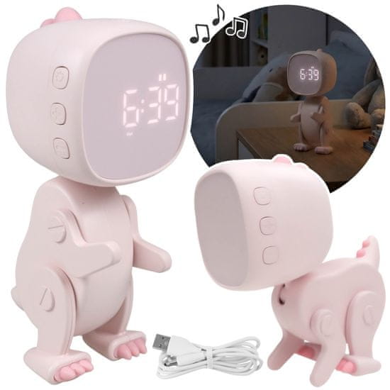 sarcia.eu Mary’s Elektronska ura z zaslonom za otroke, budilka za spalnico – roza ROBO dinozaver, USB