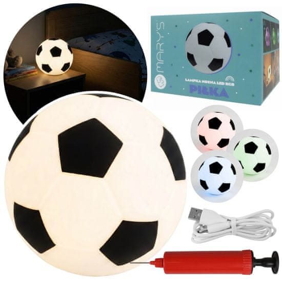 sarcia.eu Mary's Silikonska LED nočna lučka, nogometna žoga s črpalko, za spanje za sobo navijača, USB topla RGB lučka