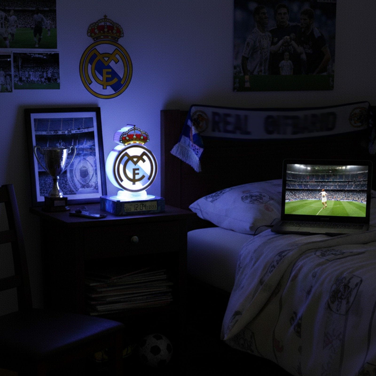 sarcia.eu Real Madrid 3D nočna lučka z budilko in himno Hala Madrid, izdelki za navijače, svetloba, zvok