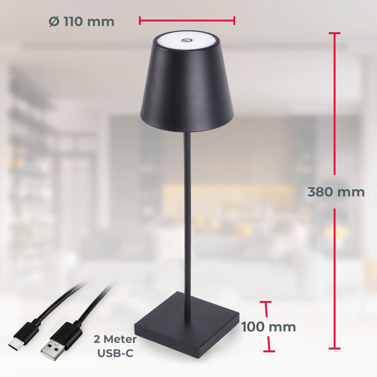 Brezžična LED namizna svetilka – IP54 Dom in vrt Črna nočna zatemnilna svetilka Celoten opis