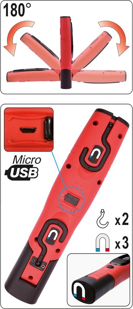 Vrtljivo ohišje omogoča nagibanje svetilke pod poljubnim kotom. Zahvaljujoč tej funkciji, skupaj z dvema dodatnima kavljema in tremi magneti, jo je mogoče enostavno in prilagodljivo namestiti. To omogoča optimalno osvetlitev želenega prostora, hkrati pa vam pušča proste roke.