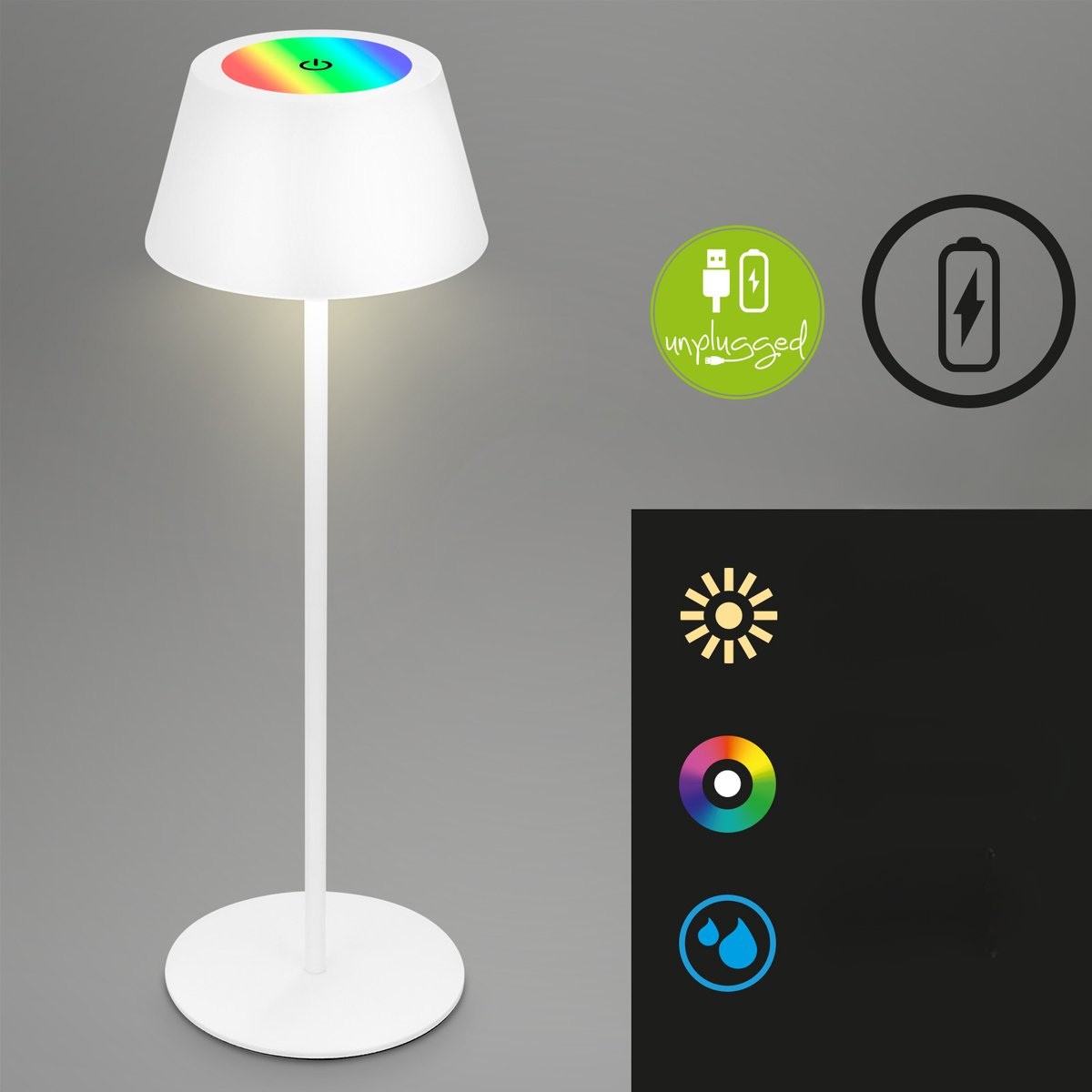 RGB LED namizna svetilka brezžična bela IP44 za dom in zunanjo uporabo z USB-jem Celoten opis