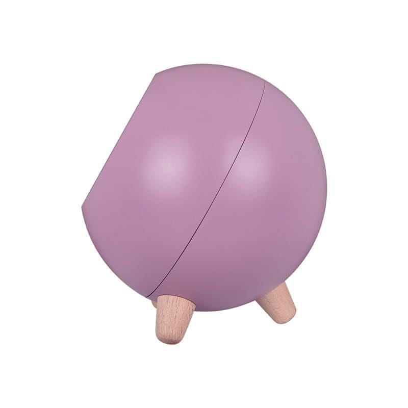 Ta sferična nočna lučka za otroško sobo je izdelana iz bukovega lesa in zaradi stabilnosti sloni na treh nogah. Očesu prijetna, umirjeno vijolična barva bo dodala čar otroški sobi. Vgrajene LED žarnice zagotavljajo prijetno svetlobo. Dodatno je otroška nočna lučka opremljena z brezstopenjskim zatemnilnikom. Tako lahko nastavite želeno jakost svetlobe, od zadostne za branje pravljice za lahko noč do svetlobe, ki nežno osvetli sobo, ne da bi pri tem motila spanec. Nočna lučka ima vgrajeno baterijo, ki zagotavlja do 36 ur svetlobe. Čas gorenja te LED sijalke je odvisen od nastavitve jakosti. Zaradi varčevanja z energijo se bo svetilka samodejno izklopila po dveh urah uporabe. Prvo polnjenje naj bi trajalo približno štiri ure. Preprosto uporabite standardni polnilnik za telefon z vrati USB. Čeprav svetilka ni priložena, boste našli polnilni kabel. Ko je napolnjena, lahko odklopite kabel in postavite svetilko na najprimernejše mesto v otroški sobi. Svetilka ima gumbe, občutljive na dotik, za udoben vklop in izklop. Gumb za zatemnitev vam omogoča prilagajanje svetlosti. Ob nakupu te LED nočne lučke za otroke v spletni trgovini Habarri boste prejeli tudi priročnik v poljskem jeziku, ki vas bo vodil skozi njeno enostavno uporabo.
