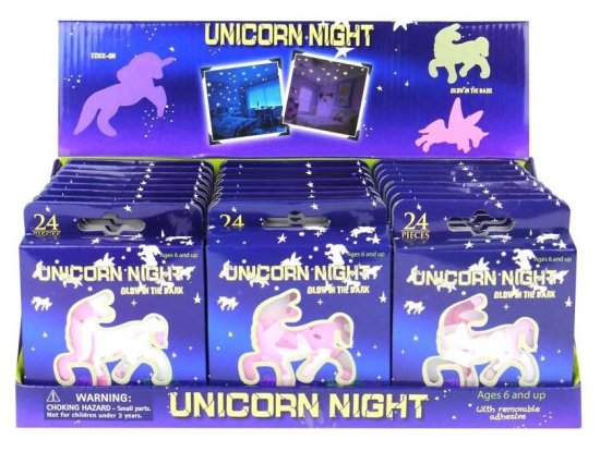 Plastični stenski okraski bodo polepšali sobo vsakega ljubitelja čarobnih samorogov. Komplet vsebuje 24 plastičnih enorogov, ki se ob osvetlitvi prižgejo.