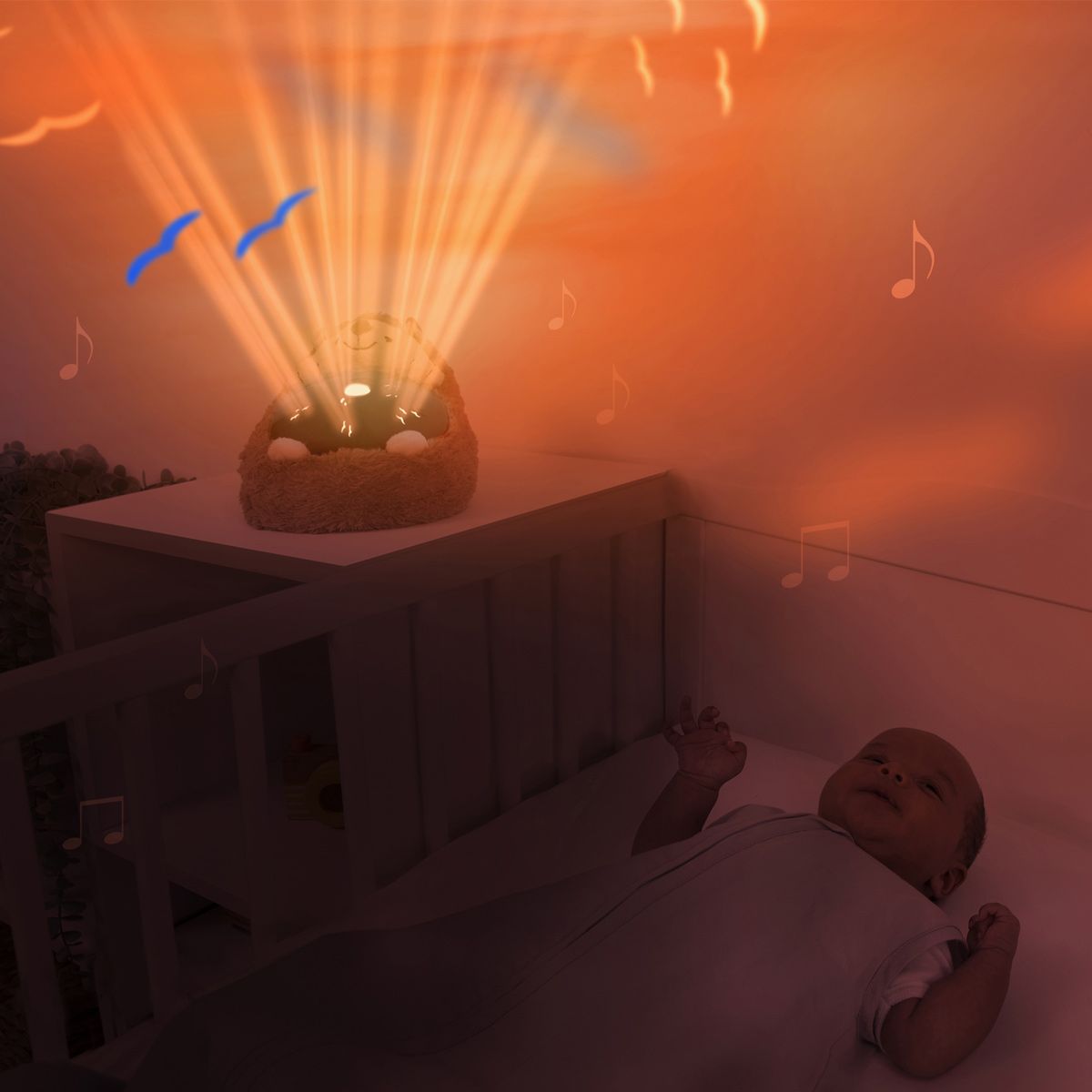 Ljubek zvezdni projektor v obliki ježka Henryja projicira oranžno svetlobo sončnega zahoda, ki spodbuja produkcijo melatonina ter predvaja zvoke Afrike, uspavanke ali srčni utrip. Ponaša se s senzorjem za jok, ki omogoči, da se projektor samodejno prižge, ko zazna zvoke, ki nakazujejo, da se je otrok prebudil.