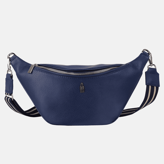 Torbica za okoli pasu je lahko tudi elegantna in ženstvena. Še več, lahko se celo ujema z žensko obleko in je popolna za v službo. In prav to je naša nova torbica za okoli pasu. Torbica je ročno izdelana na Poljskem iz naravnega italijanskega usnja. Ta model ima klasičen, brezčasen temno moder odtenek, srebrne detajle in priročno zapiranje z zadrgo. Bodite pozorni tudi na presenetljiv trak iz tkanine – ima moden vzorec in ga lahko prilagodite v nekaj sekundah ali pa ga preprosto snamete in zamenjate z drugim.
