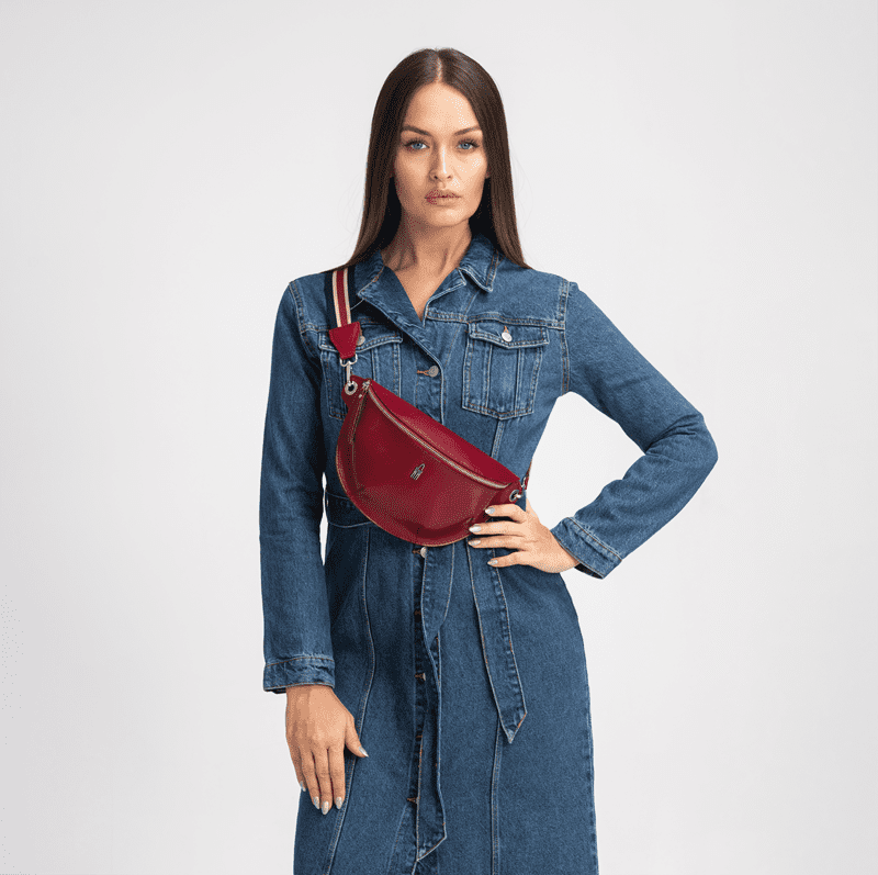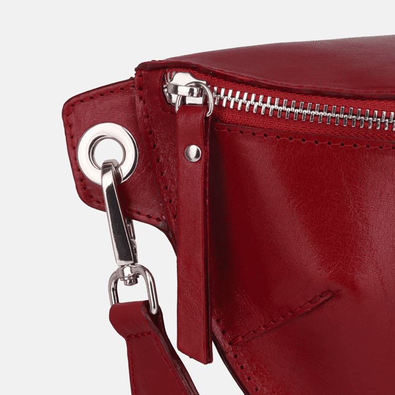 Spoznajte ZOYA – rdečo usnjeno torbico okoli pasu, ki je v marsičem popolnoma edinstvena. Ta ženska torbica okoli pasu, izdelana iz najkakovostnejšega italijanskega pravega usnja, izžareva stil in eleganco. Zaradi vsestranske zasnove je primerna za vsako priložnost. Nastavljiv trak vam omogoča, da torbo nosite na boku ali rami, odvisno od vaših želja.