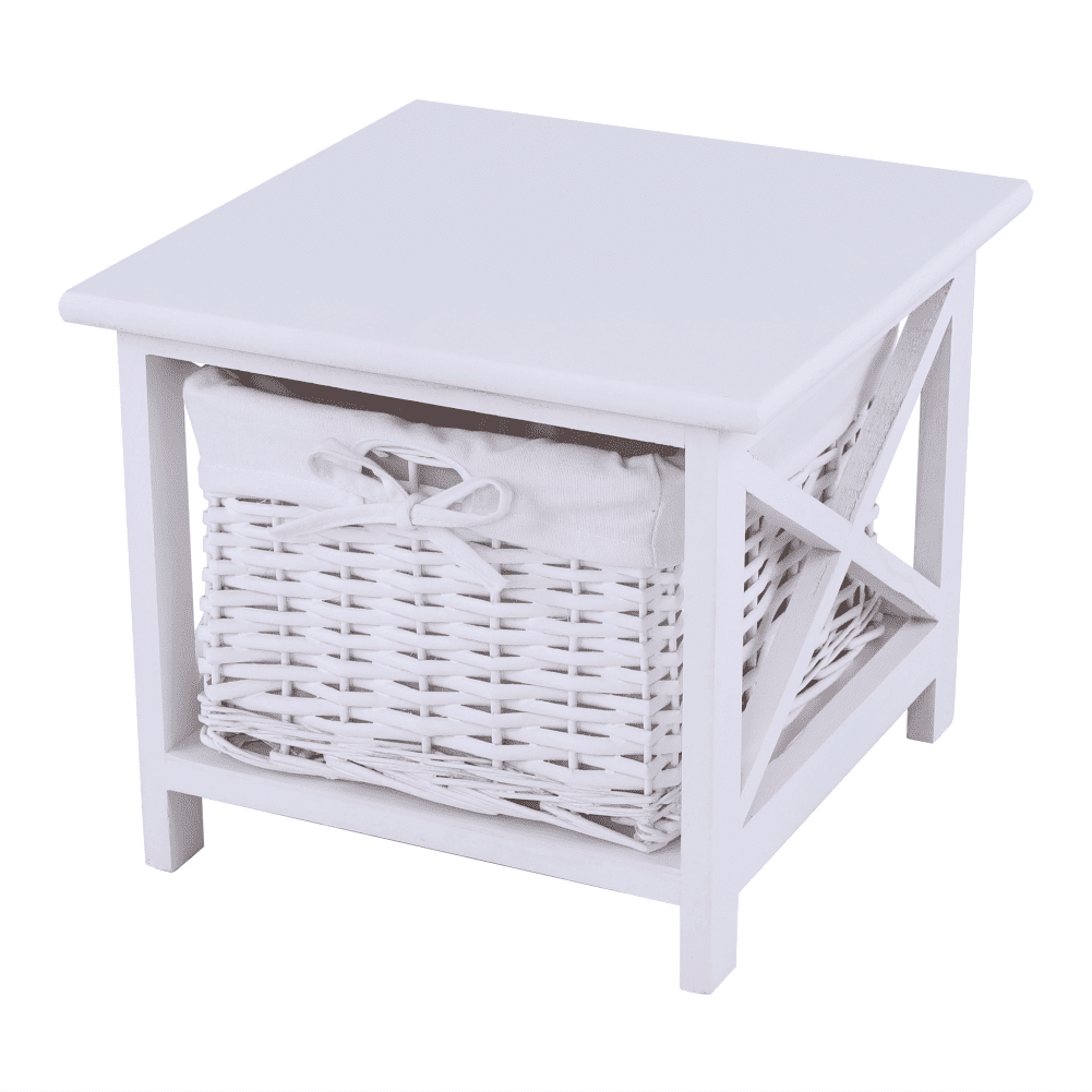 KONDELA Nočna omarica, lesa / protja/tkanine, bela, Raphaella