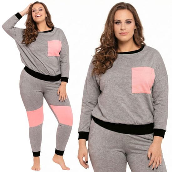 Sivo barvno shemo razbijejo modni rožnati vstavki na žepih in nogah, ki pižami dajejo sodoben pridih.