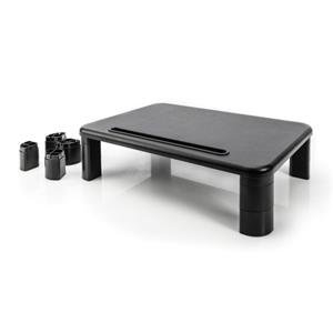 Višinsko nastavljivo stojalo za monitor omogoča individualno postavitev delovnega mesta. Zaradi modularne zasnove nog lahko prilagodljivo povečate višino v treh korakih in postavite tablični računalnik ali pametni telefon na sprednji del.