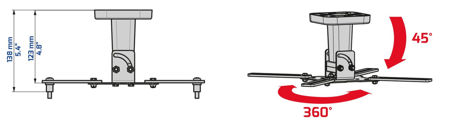 Meliconi PRO 100 stropni nosilec za projektor, črn, lahko drži naprave do 15 kg. Celoten opis