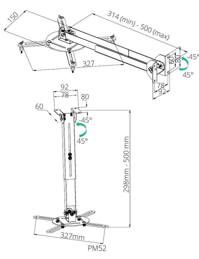 Konstrukcija za pritrditev projektorja na strop ali steno * Uporaba: projektor * Vrsta nosilca: strop/stena * Največja teža: 10 kg * Material: kovina * Barva: srebrna Celoten opis