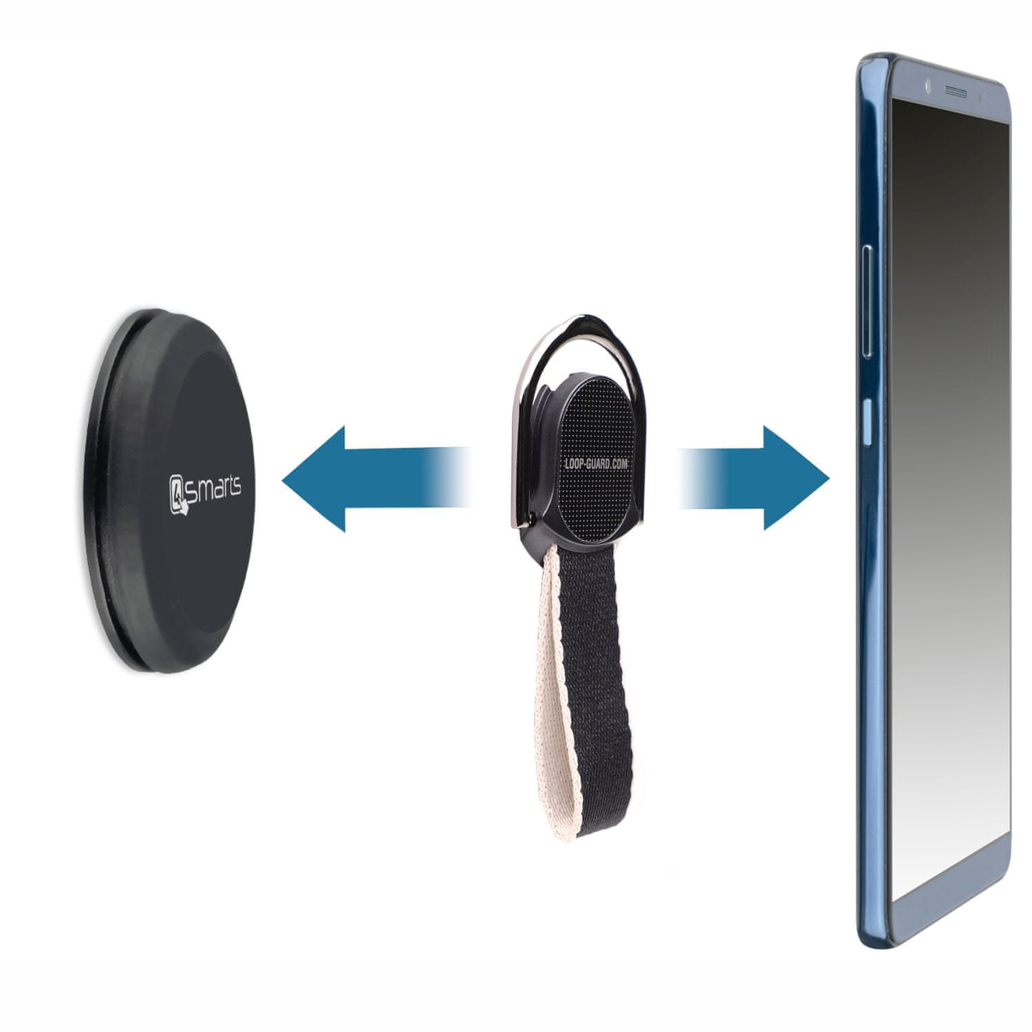Navodila za uporabnika Na nosilec je mogoče pritrditi samo kovinske predmete. Če želite na nosilec pritrditi svoj pametni telefon, morate pritrditi npr. kovinsko ploščo iz naše serije UltiMag ali držalo z zanko (ni priloženo v paketu).