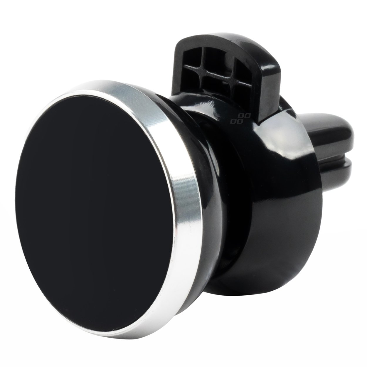 Magnetni nosilec za namestitev na zračne odprtine v avtomobilu. Držalo je majhno (premer 3,5 cm, globina 3 cm) in ima zelo močne magnete, ki varno držijo telefon.