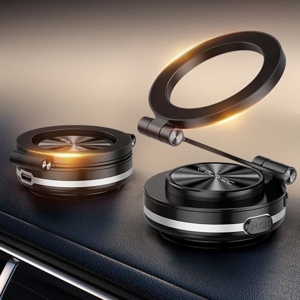• Zahvaljujoč vakuumsko-magnetni tehnologiji nosilec varno drži pametni telefon na gladkih in ravnih površinah