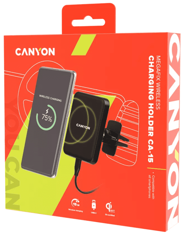 Canyon Megafix CA-15 magnetni avtomobilski nosilec, brezžično polnjenje, črn (CNE-CCA15B)