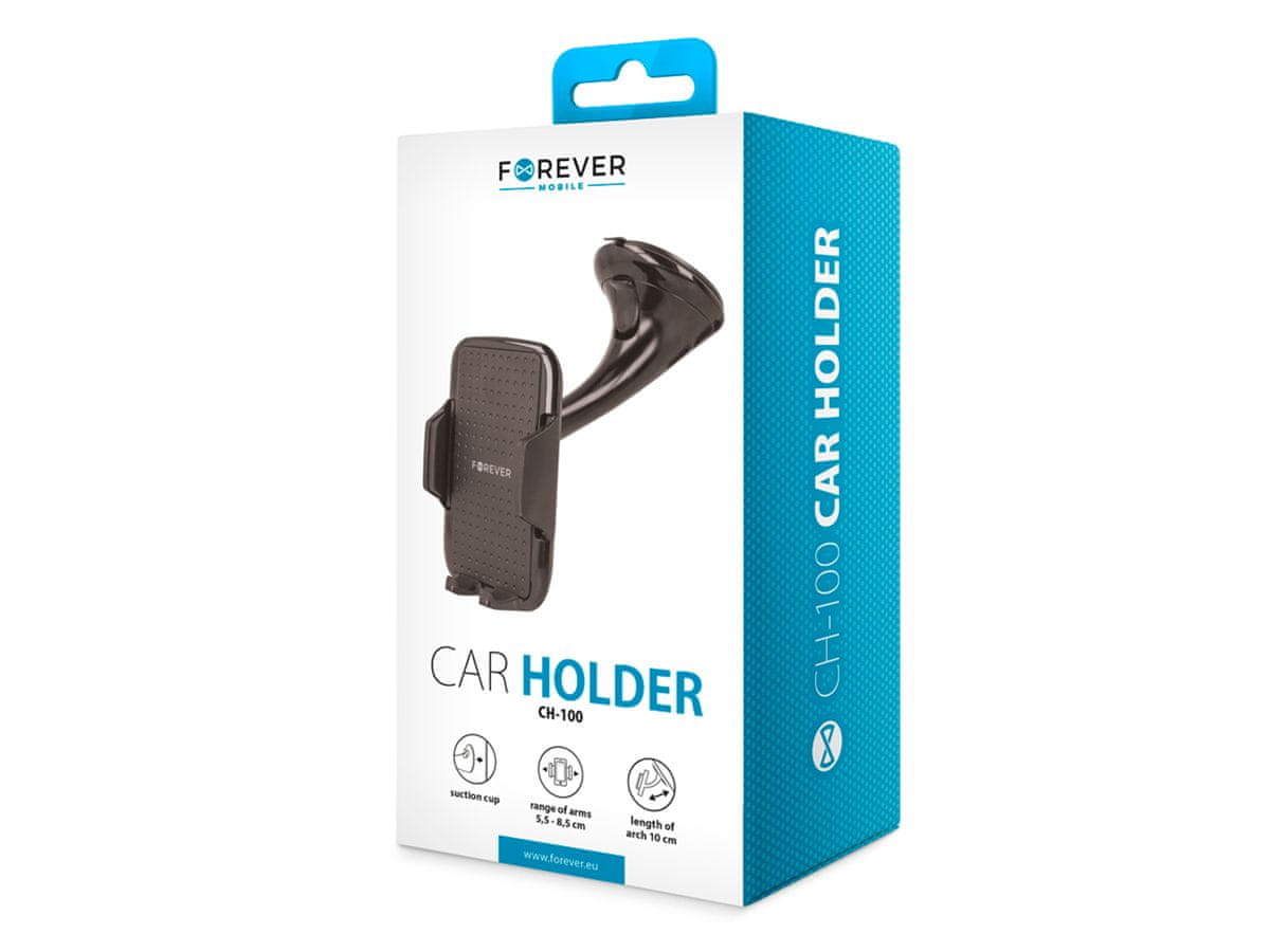 Forever CH-100 nosilec za telefon je združljiv z večino pametnih telefonov. Omogoča vam priročno namestitev vaše mobilne naprave in je uporaben pripomoček za voznika, saj se s svojo preprosto in klasično zasnovo prilega notranjosti katerega koli vozila.