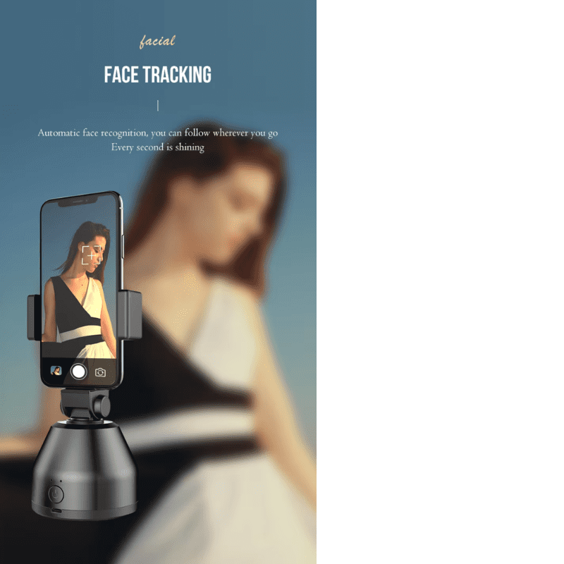 Stojalo za snemanje s sledenjem obraza vam omogoča ustvarjanje profesionalnih videov brez drage opreme. Z vgrajenim programom za prepoznavanje obraza omogoča snemanje v 360°, pri čemer ves čas drži osebo v središču kadra. Idealno za gibanje med snemanjem, kot so športni dogodki, vaje, plesi ali kakršne koli druge aktivnosti. S prilagodljivim nosilcem je stojalo združljivo z večino pametnih telefonov. Enostavno ga uporabite: prenesite aplikacijo, vstavite telefon, začnite snemati in ustvarite svoj prvi profesionalni video!