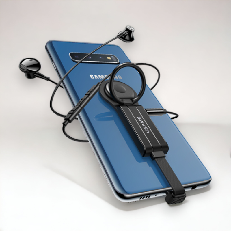 Inovativni držalo za telefon znamke USAMS omogoča poleg udobnega držanje hkratno polnjenje naprave in poslušanje glasbe. Ni vam več treba izbirati med enim ali drugim.