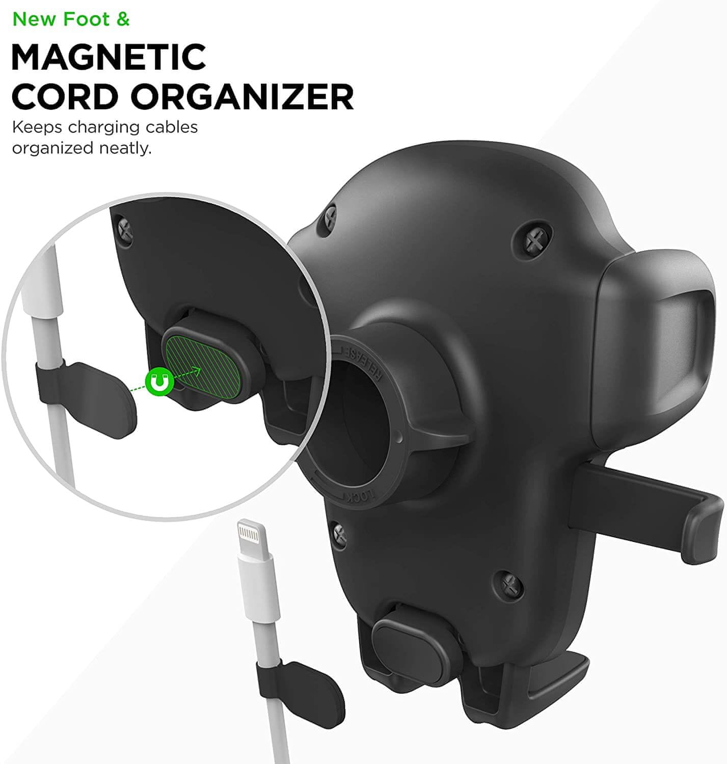 • Magnetni organizator kablov na zadnji strani – konec zapletenih kablov zaradi magnetne pritrditve kabla na držalo