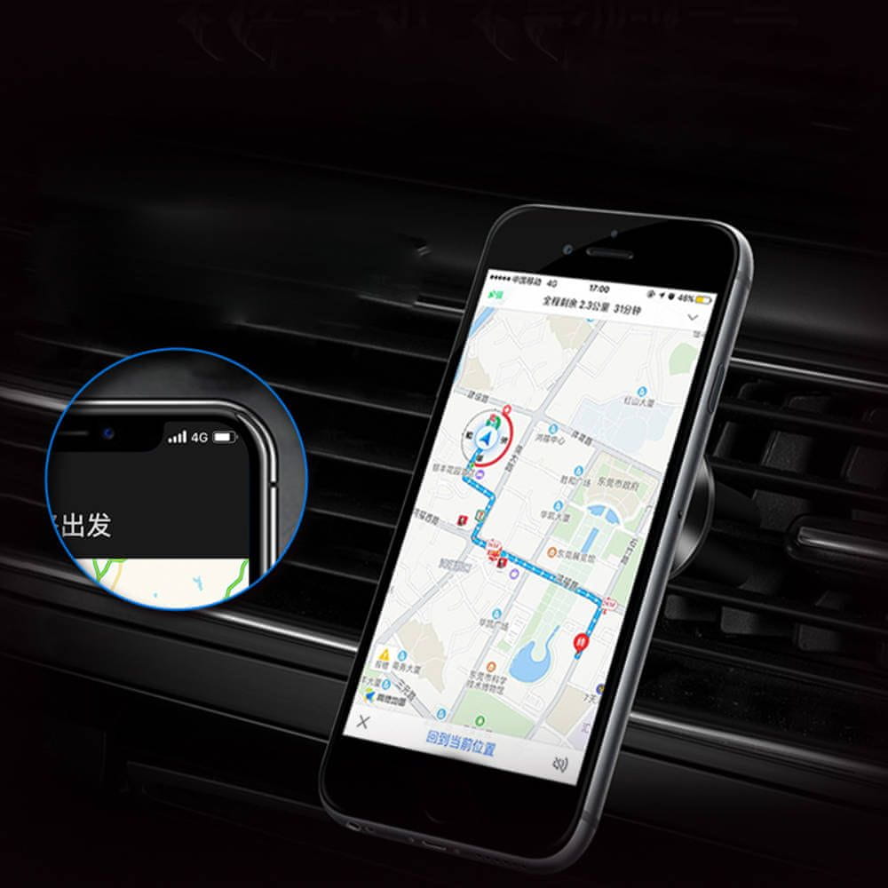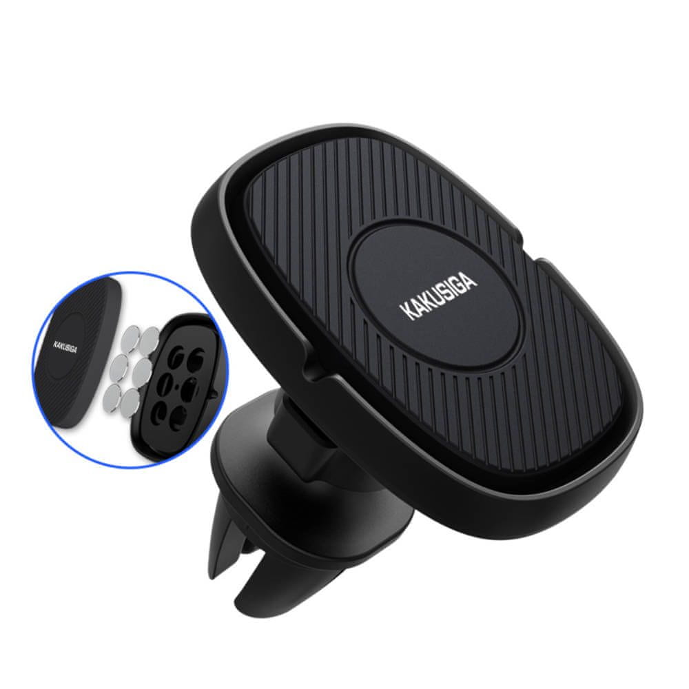 Magnetno držalo je namenjeno vgradnji v prezračevalno rešetko vozila. Pritrditev držala je pritrjena z vgrajenimi magneti in lepilno kovinsko ploščo, ki se nalepi neposredno na telefon, etui ali pod etui. Majhna, lahka zasnova se zlahka prilega vsakemu odlagalnemu prostoru, predvsem pa ne vpliva na vidljivost med potovanjem.