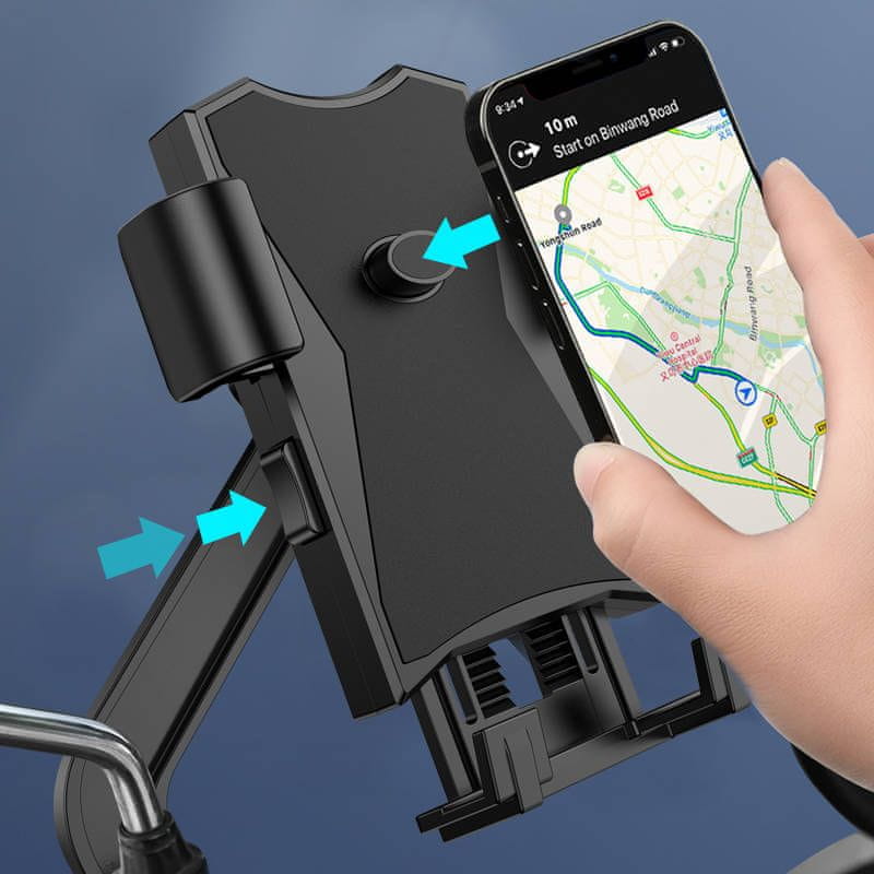 Nosilec za mobilni telefon je praktičen in funkcionalen dodatek za motorje, skuterje in kolesa. Nosilec ima 360° rotacijo, kar pomeni, da lahko pametni telefon nastavite pod poljuben kot za optimalno gledanje. Primeren je za pametne telefone z zaslonom od 4 do 6 inčev, kar omogoča udobno uporabo navigacije.