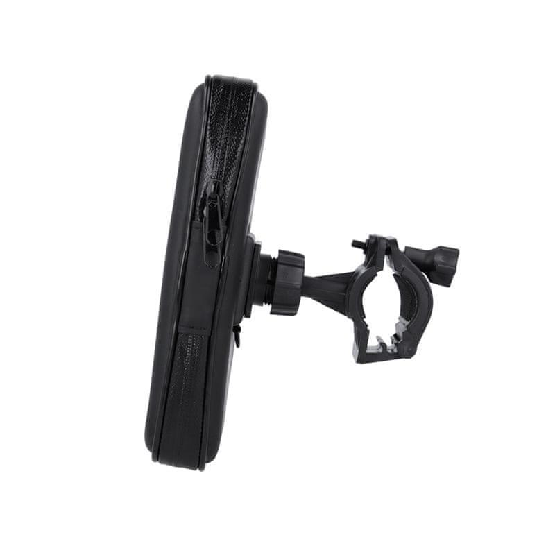 Maxlife nosilec za telefon je mogoče namestiti na krmilo kolesa, zgornjo cev ali steblo. Primerno za krmilo koles od 14 do 26 mm v premeru. Vodoodporen zahvaljujoč prozorni foliji na sprednji strani. Torbica z zadrgo.