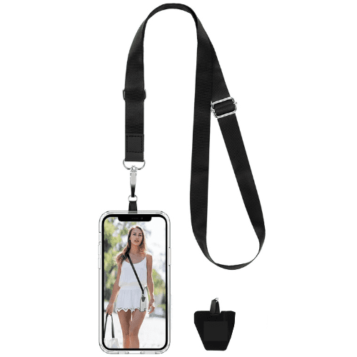 Netscroll Unisex trak za varno in enostavno prenašanje telefona, s trakom imate prosti obe roki in telefon na hitrem dosegu, dodana mini torbica za kartice ali denar, prilagodljiva dolžina, ClipGo