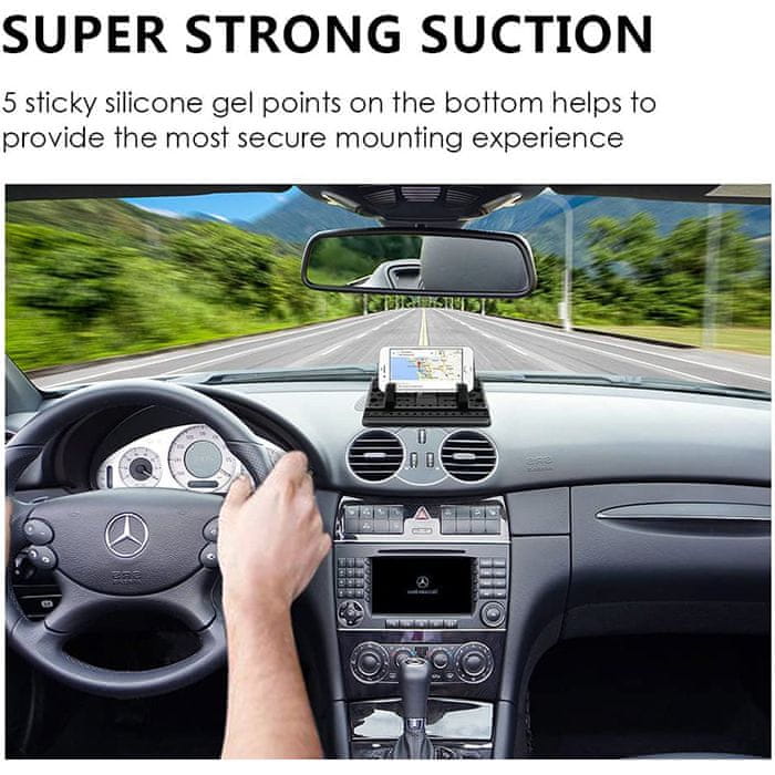 Netscroll Univerzalni avto nosilec za pametni telefon, silikonsko nedrseče držalo za armaturno ploščo, 5 lepilnih točk, za iPhone, Samsung, Huawei, Garmin, tudi za ukrivljene površine, CellphoneMat