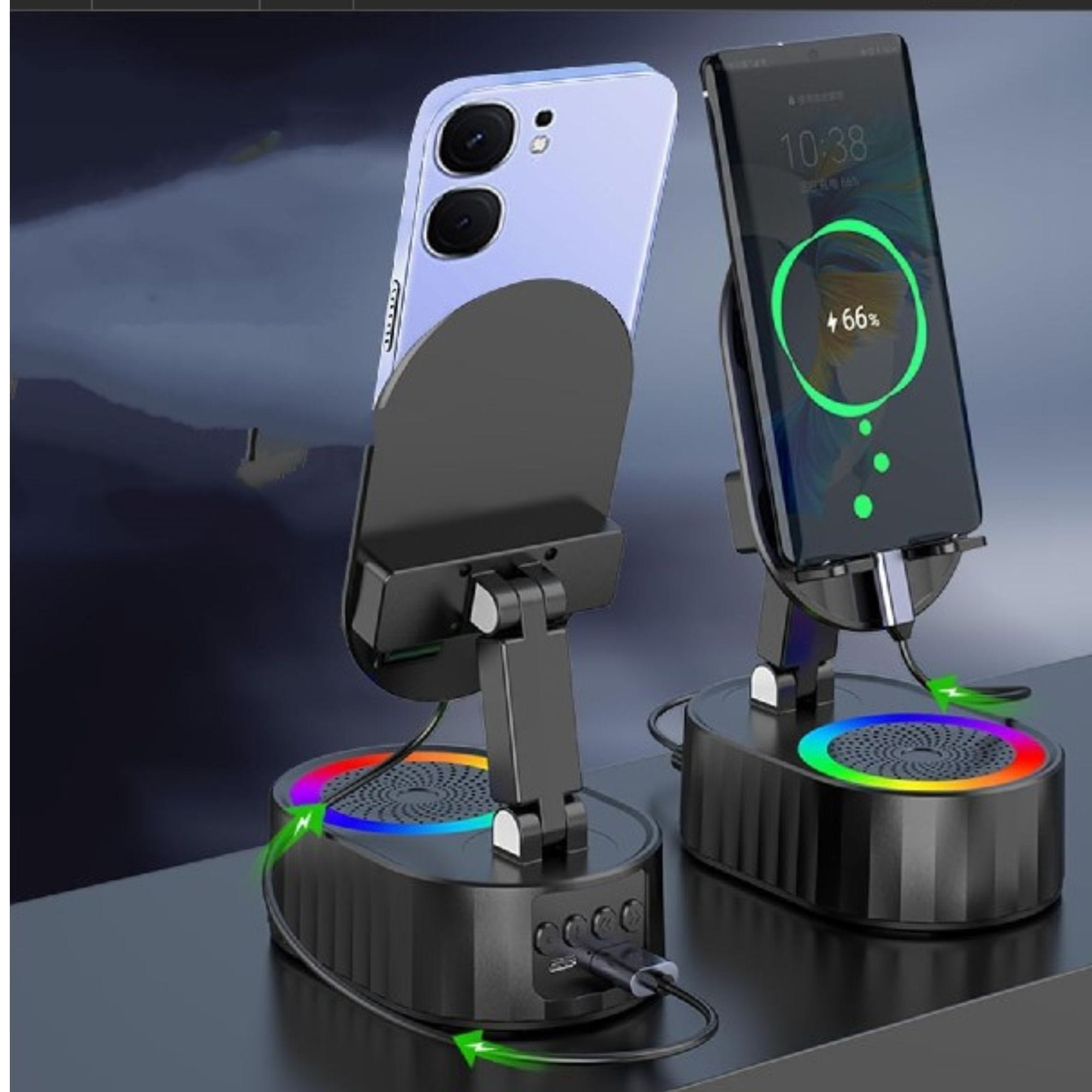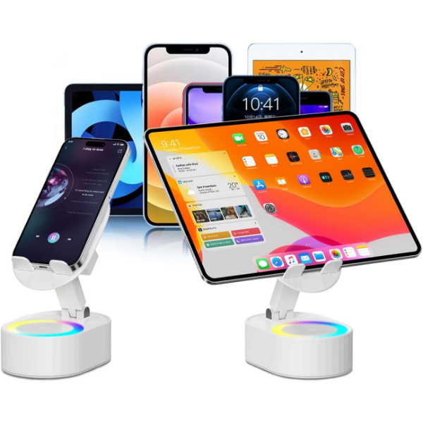 VYZIO® Pametno držalo za telefon z zvočnikom in 1800 mAh baterijo, zložljivo, LED osvetlitev | MOBIBASE