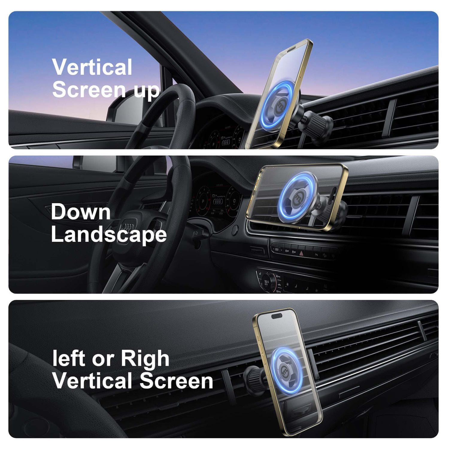 • Skladnost z lopaticami zračnikov: ta funkcija vam omogoča, da prilagodite svoj telefon v popoln kot gledanja in tako izboljšate svojo izkušnjo vožnje.
