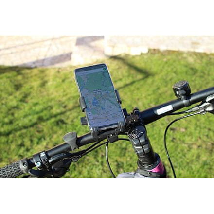 Vsi kolesarji bodo zagotovo cenili držalo za telefon 2.0, s katerim bodo imeli mobilni telefon vedno na očeh tudi med vožnjo. Držalo je izdelano iz plastike ABS in mehke pene, ki preprečuje prenos udarcev na telefon med vožnjo. Mobilni telefon se v držalo namesti s sponko, ki je prilagodljiva. Držalo za telefon 2.0 je primerno za telefone s širino od 6,5 do 9,5 cm, diagonalo od 12,7 do 17,7 cm in največjo debelino 1,2 cm. Telefon lahko v držalu zavrtite za 360° in ga na krmilu namestite vodoravno in navpično. Teža samega držala je le 130 g. Uporaba. Z vrtljivim kolescem na zadnji strani držala nastavite želeni kot, pod katerim želite postaviti mobilni telefon. Zdaj samo pritisnite plastične gumbe OPEN na straneh, vstavite telefon in rahlo pritisnite sponko ob zaslon, da se pritrdi. Če vam višina držala ne ustreza, jo lahko prilagodite z gumbom na dnu.