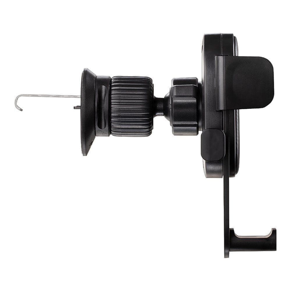 OBAL:ME GravGripper avtomobilski nosilec se popolnoma prilagodi vsem velikostim mobilnih telefonov. Gravitacijska metoda omogoča enostavno in hitro pritrditev telefona. Ko telefon vstavite v držalo, njegova teža aktivira zaklepni mehanizem, ki varno zaklene telefon na mestu. Rokovanje ne bi moglo biti lažje. S pritiskom na stranske gumbe se roke držala sprostijo in naprava se lahko varno vrne v vaše roke. Sistem vrtljivega 360-stopinjskega zasuka omogoča nastavitev optimalnega kota za ogled navigacije, sprejemanje klicev ali uporabo drugih funkcij. Z namestitvijo držala GravGripper v prezračevalno rešetko zagotovite stabilno, varno in praktično namestitev telefona za udobno vožnjo.