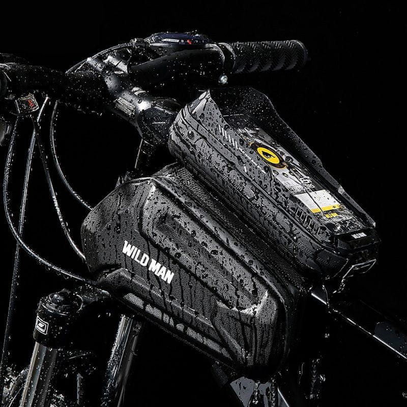 Kolesarska torba z etuijem za mobilni telefon – prostornina 1,2 litra, nepremočljiv material, iz trdega PC materiala, montaža na okvir kolesa. Primerno za naprave do 6,8 inčev. Celoten opis