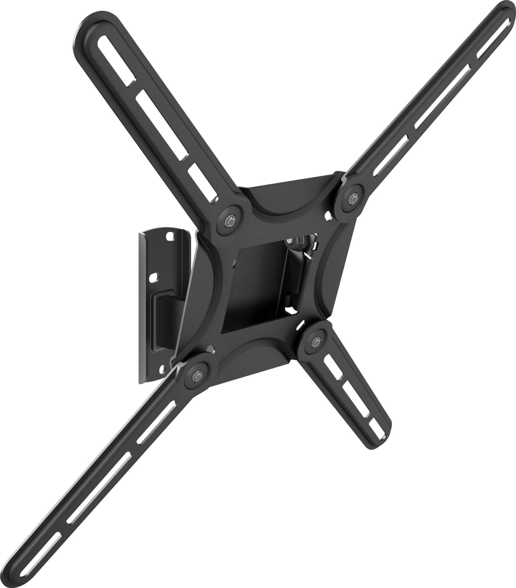 Dvojno nagiben stenski nosilec Barkan za ravne in ukrivljene TV do 165 cm (65"). Nagiben je do 15° in vrtljiv do 40°. Od zidu je lahko oddaljen **10,1 cm.