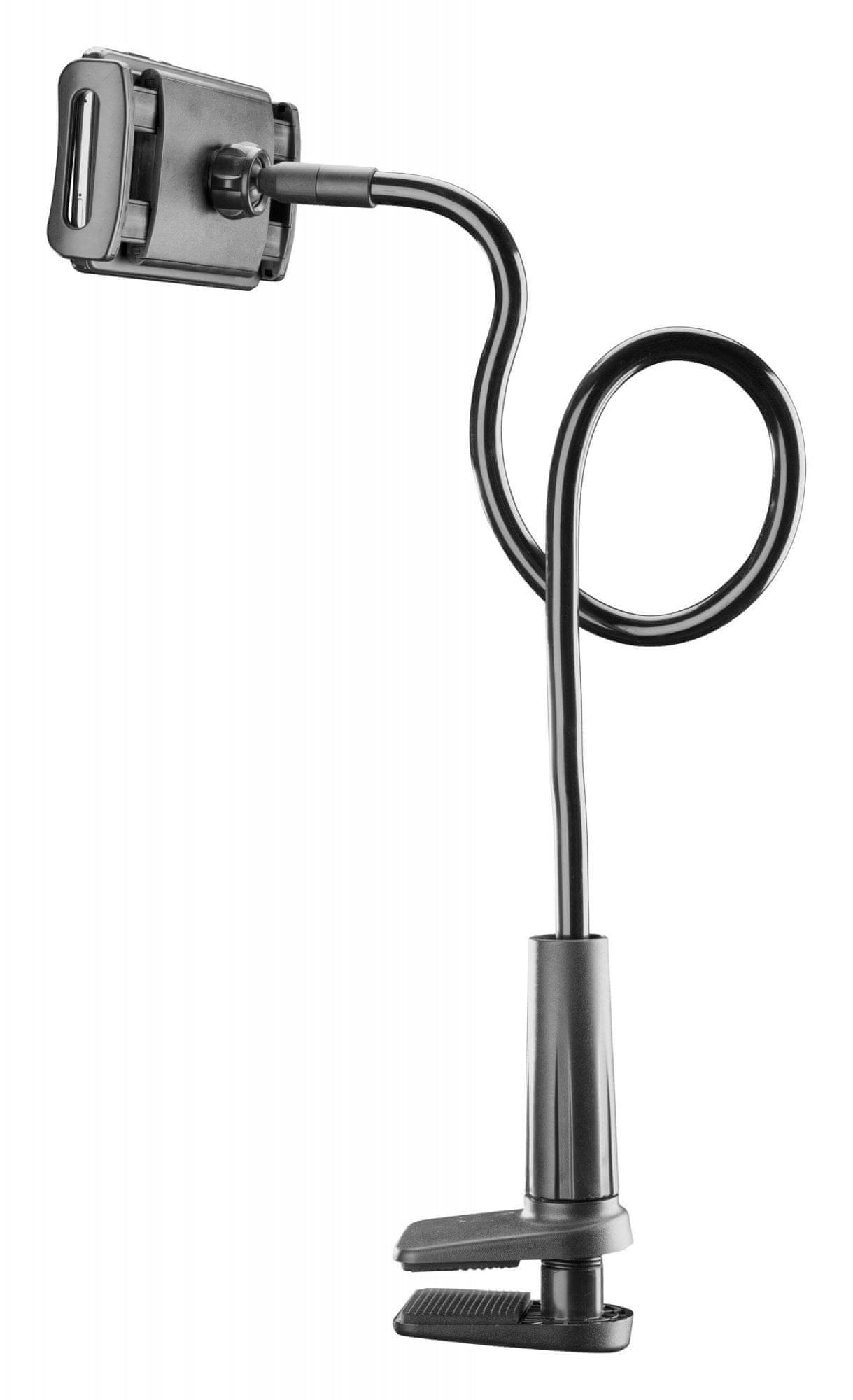 Univerzalno držalo je zasnovano za vse telefone in tablične računalnike širine do 19,5 cm. FLEXI držalo za mobilne telefone in tablične računalnike (FLEXIHOLDERHOMEK) omogoča prilagoditev kota gledanja telefona. Ima poseben ročaj za pritrditev na mizo, zaradi gibljive roke pa lahko napravo prilagodite, kot potrebujete. Vzpostavitev je hitra in enostavna. Celoten opis