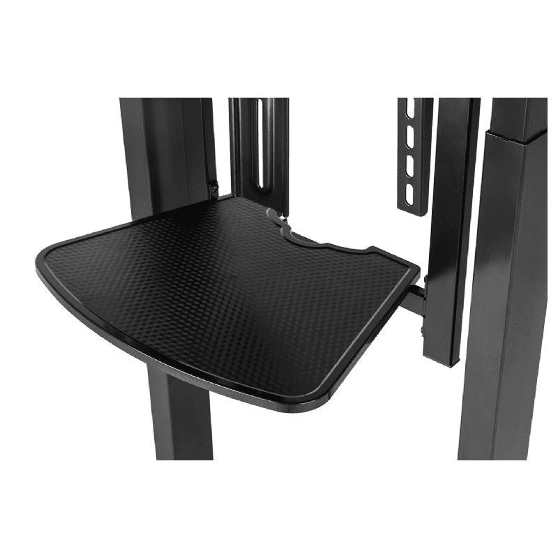 Motorizirano mobilno stojalo Gembird TVS-100T-01 za zaslone 55" – 100" ( 140 – 254 cm ), z dvema poličkama za opremo in kamero, obremenitev do 120 kg, za stacionarno ali mobilno uporabo (4 kolesa vključena).