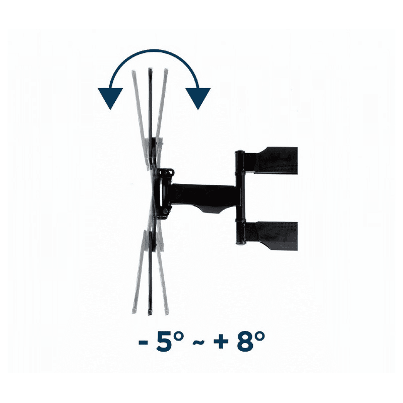 Jeklen vrtljiv/nagiben nosilec. Podpira večino 32"- 55" LCD/LED televizorjev. Združljivo z VESA, maks. 400×400 mm. Stenska razdalja: 55–499 mm. Omogoča vrtenje do 180 stopinj in 8 stopinj nagibanja. Vključuje vse potrebne inštalacijske materiale.