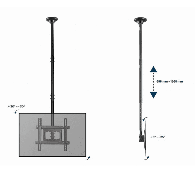 Stropni nosilec Gembird CM-70ST-01 za LED / PLASMA / LCD zaslon velikosti 32 do 70 palcev. Nosilnost je 50 kg.