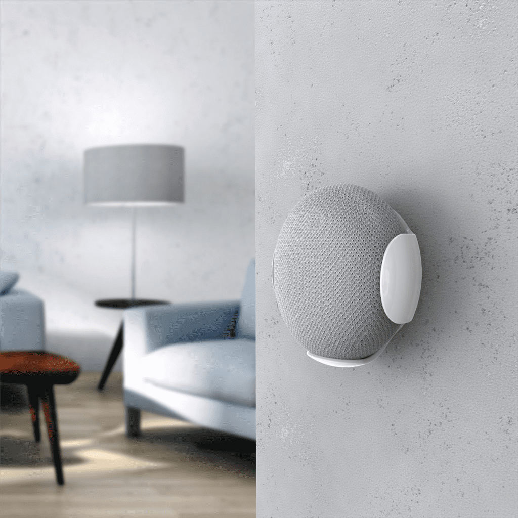 • Držalo za namestitev naprave Google Home mini ali Google Nest mini (2. generacija) na steno, kjer ne ovira in zlahka sprejema glasovne ukaze