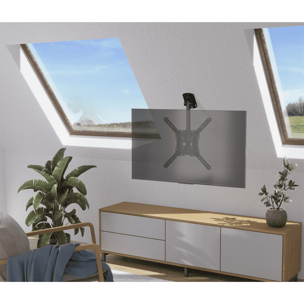 • stropni nosilec za namestitev ravnega zaslona, zaradi tečaja primeren tudi za poševne strope (npr. na podstrešju)