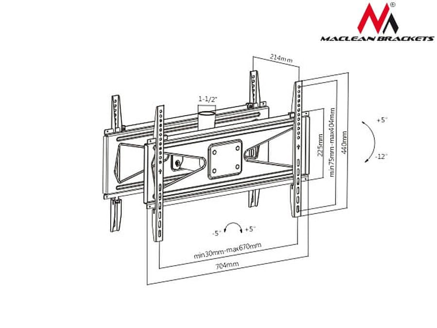 Nosilec Maclean MC-703 je univerzalen in trpežen rešitev za namestitev dveh televizorjev. Ta kvalitetni izdelek iz linije Profi Market System je namenjen enostavni in varni montaži LCD, LED in plazmatskih televizorjev in monitorjev, ki ustrezajo standardu VESA. Zmožen je nositi težo do 50 kg, kar omogoča prilagoditev za televizorje velikosti od 23 do 75 palcev, lahko pa tudi večje naprave, če njihova skupna teža ne presega 50 kg in ustrezajo specifikacijam VESA.