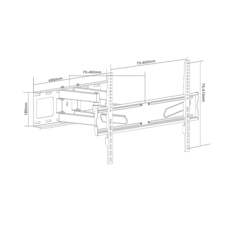 Zasnovan za LED / PLASMA / LCD zaslone Blagovna znamka: Maclean Brackets Material: Jeklo Zasnovan za velikosti zaslona: 37 do 70 palcev Zasnovan za TV z ravnim zaslonom do: 45 kg Nosilci VESA standardi: 75×75, 100×100, 200×200, 300×300, 400×200, 400×300, 400×400, 600×400 Razdalja od stene: 70 – 460 mm Vrtljivo: do 120° Naklon: –10° ~ +20° Stabilna kovinska konstrukcija