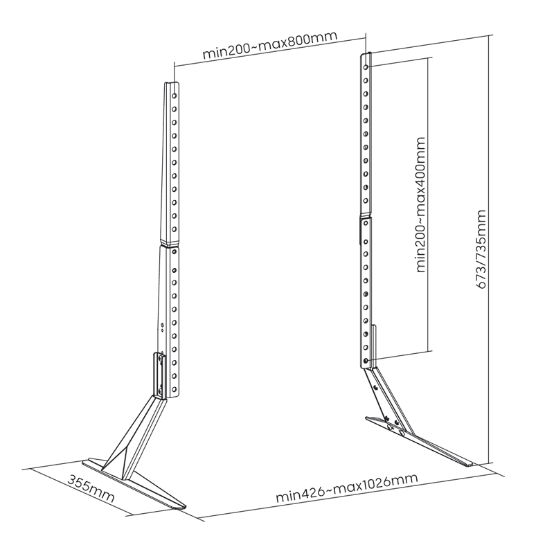 • VESA standardi: navpično od 200 do 400 mm, širina je poljubno nastavljiva