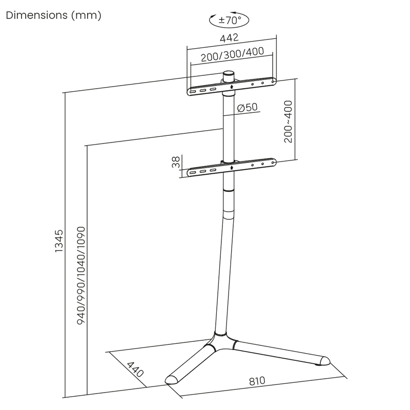 • Višina stojala: 1345 mm
