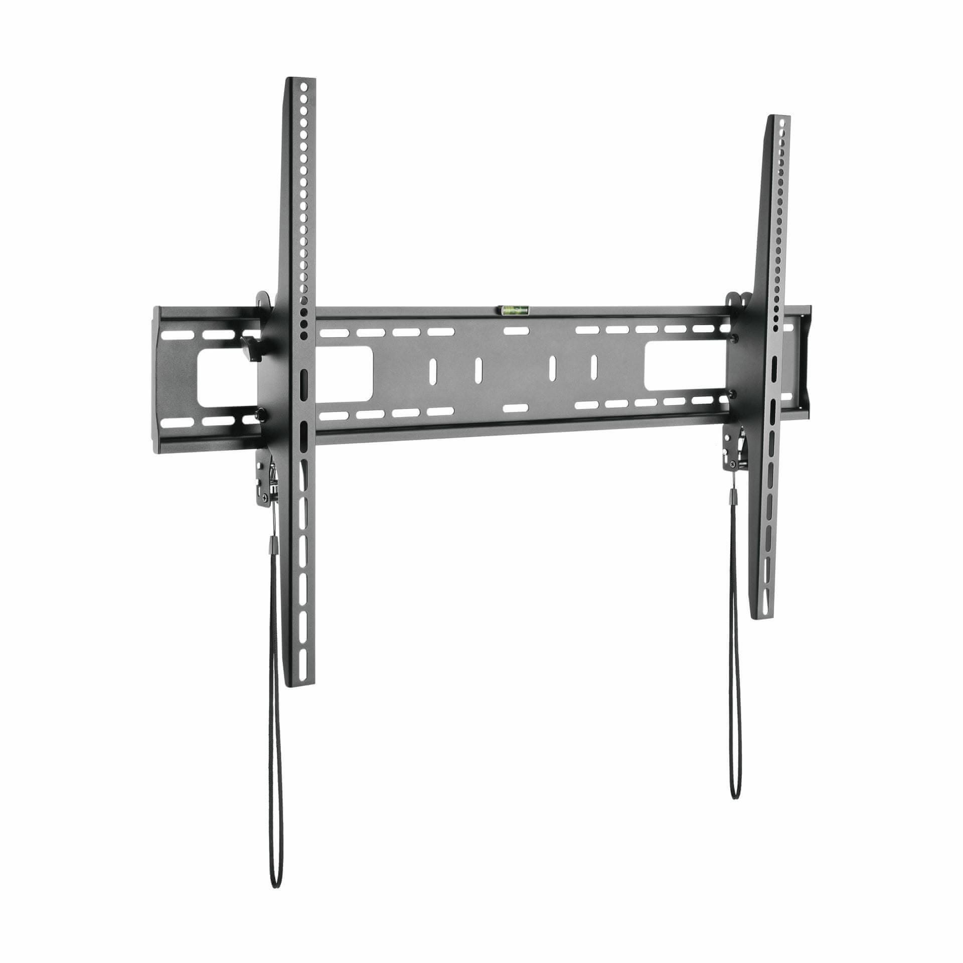 SBOX PLB-4269T je velik stenski nosilec, ki lahko sprejme večino 60" – 100" / 152 – 254 cm LED, LCD ploščatih in ukrivljenih televizorjev z največjo težo 75 kg. Omogoča vertikalno nagibanje od +5° do –10° za nastavitev idealnega vidnega kota. Nosilec ima vzmetni zaklepni mehanizem za varno pritrditev televizorja na steno.