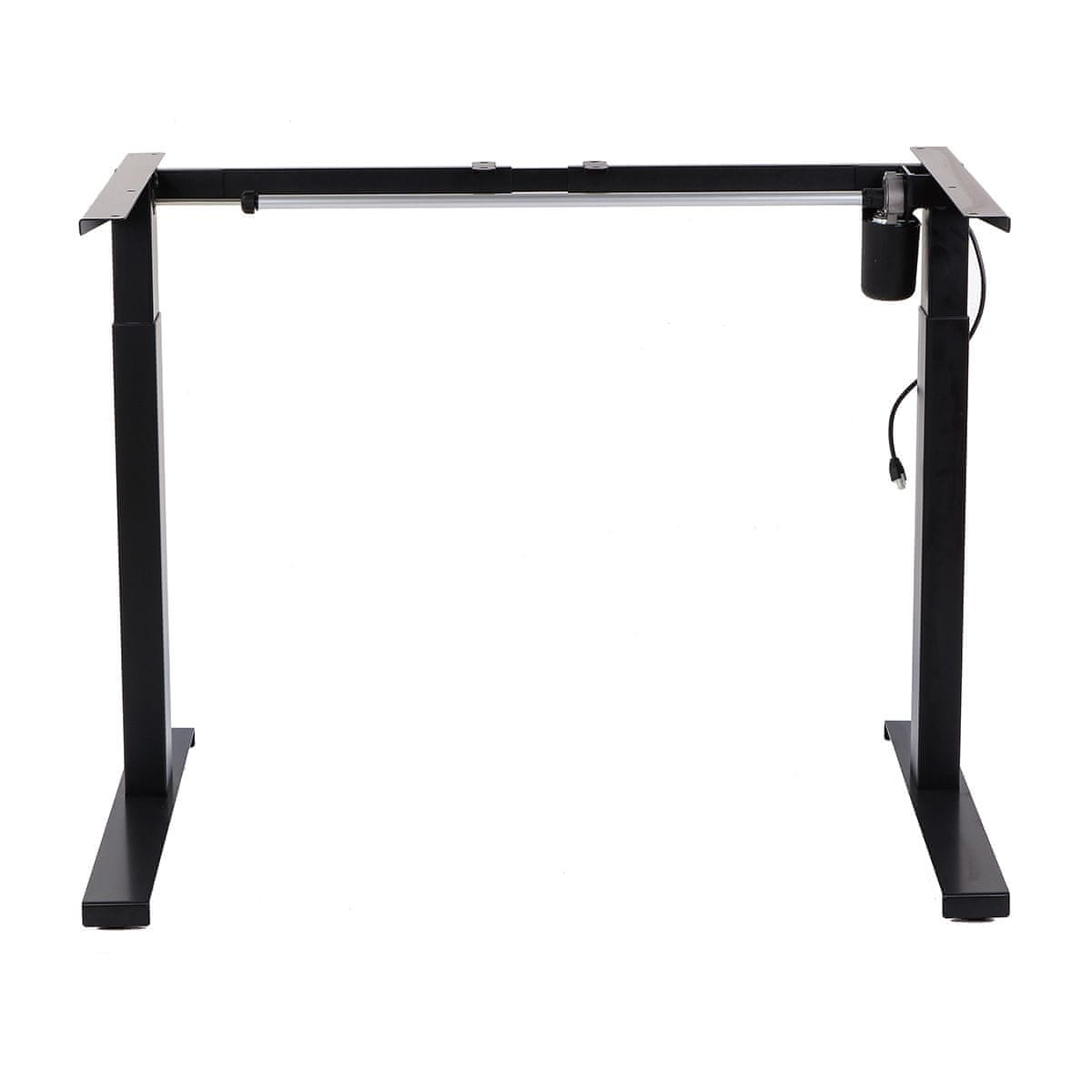 Električni okvir za pisalno mizo z enim motorjem za ergonomsko mizo in delo v stoječem in sedečem položaju. Višino vrha lahko nastavite od 72 cm do 120 cm. Nosilnost mize do 100 kg. Krmilnik s priključkom USB. Črna barva.