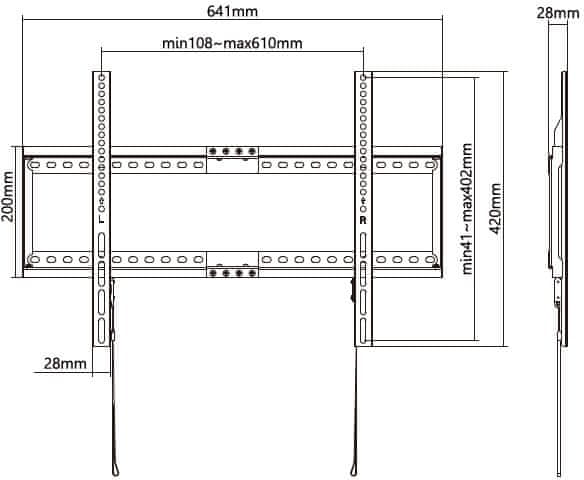 • VESA – 150×100, 150×150, 200×100, 200×200, 300×200, 300×300, 400×200, 400×300, 400×400, 600×200, 600×300, 600×400